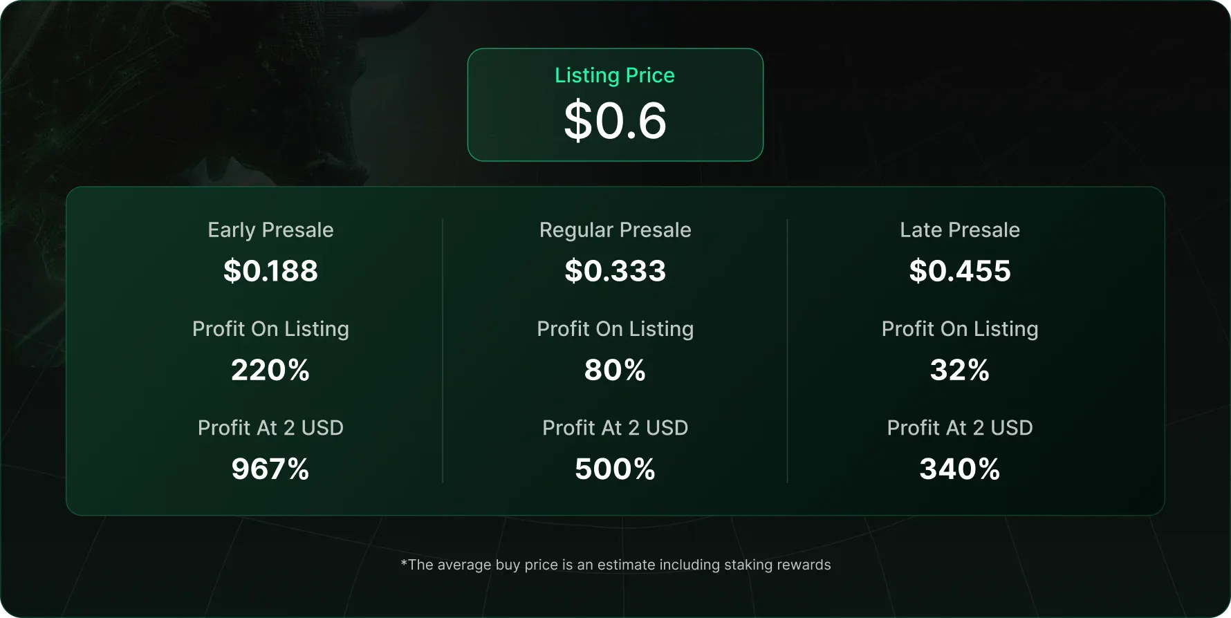 Stake your tokens either when you’re buying or on the staking dashboard. Earn rewards now!